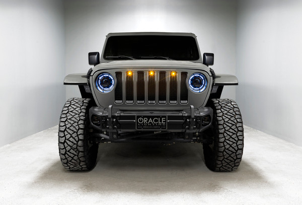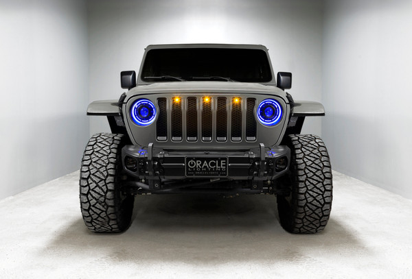 The Popular Oculus Bi-LED Headlights by ORACLE Lighting are now available in a ColorSHIFT RGB+W Color-Changing version. Oculus Headlights feature advanced focused LED projection that outshines all the competition (including the factory LED headlights). With 4,800 Lumens of high-quality Bi-LED projection, these headlights provide enhanced driver visibility in all weather conditions. Light focus is very important for driver safety and for others who can have their vision obstructed by glare. We are proud to offer the most focused & lowest-glare LED Headlights for the JL and JT on the market. Each LED feature has a separate cable output and can be connected together so all 3 create the same color or set up as 3 separate Channels or ?zones? depending on the user preference and the ColorSHIFT controller selected. Please note that these features are intended for off-road ?show? use only and are not compliant for street use. The Pure-White DRL has its own wiring harness (same as the original Oculus) that connects to the fuse box with an add-a-circuit for easy and safe integration. The DRL will come on when the engine is running or can be connected to a switch (including the factory Aux switches) for additional user control.