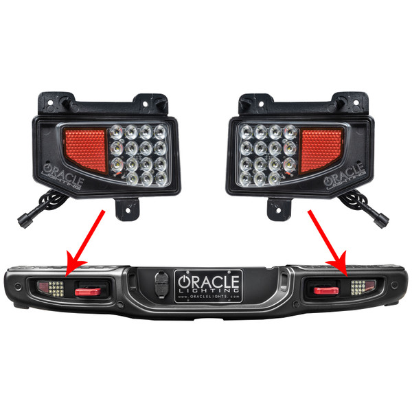 Not satisfied with the night-time visibility of your Jeep JT reverse lighting? Replace the factory bumper reflectors with high-output replacement auxiliary LED reverse lights from ORACLE Lighting! This reverse light design seamlessly integrates into the bumper reflector area to provide over 1500 additional lumens when backing up in a Jeep Gladiator. Designed for function and durability, these lights feature an aluminum housing with PMMA lens. These Gladiator reverse lights also maintain the rear reflector function with a scaled-down version integrated into the housing. These compact lights pack a big punch with a total of 30 high-powered LEDs to improve your Jeep Gladiator bumper reverse lights. Ready to install out of the box, this kit ensures you will have rear visibility in your Jeep Gladiator when it matters! Installation uses factory mounting hardware and these lights tie into the rear light wiring with the included T-taps. To simplify your installation, we have included a Plug & Play Wiring Harness with your Reverse Light Set.